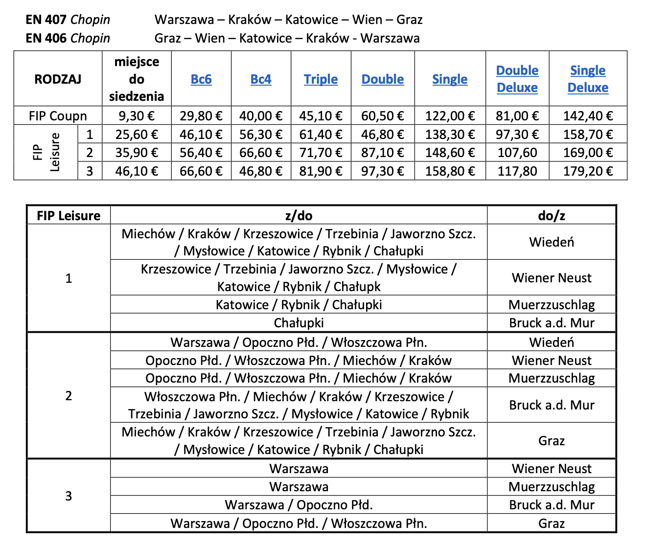 EN 406+407 Chopin [Warszawa – Kraków – Katowice – Wien – Graz]