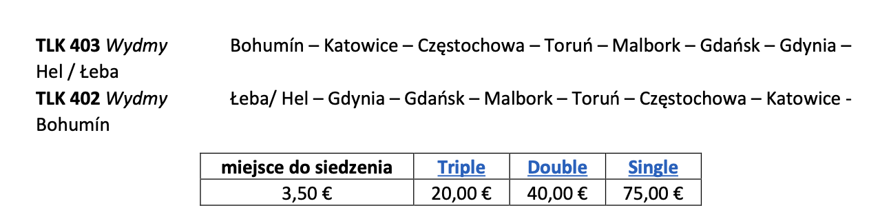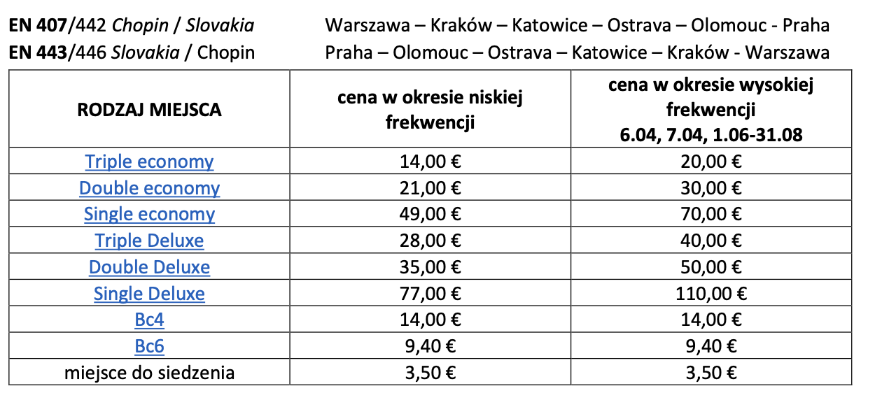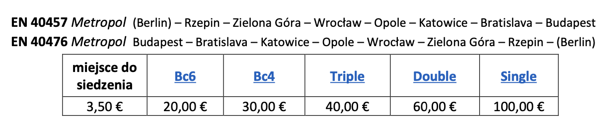 - 3 én 4 couchette compartimenten: 69,- złoty (ongeveer 17,50 euro)