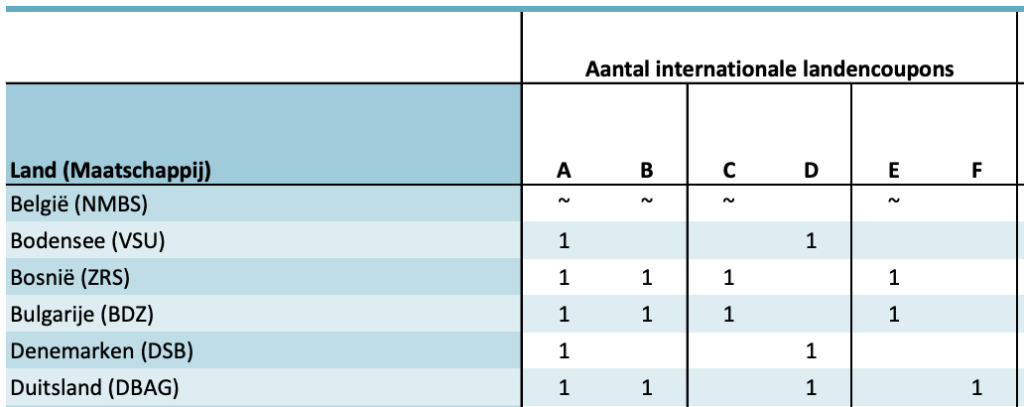 Onder “Aantal internationale landencoupons” zie je de letters a tot en met f staan. Hieronder de uitschrijving van de betekenis hiervan