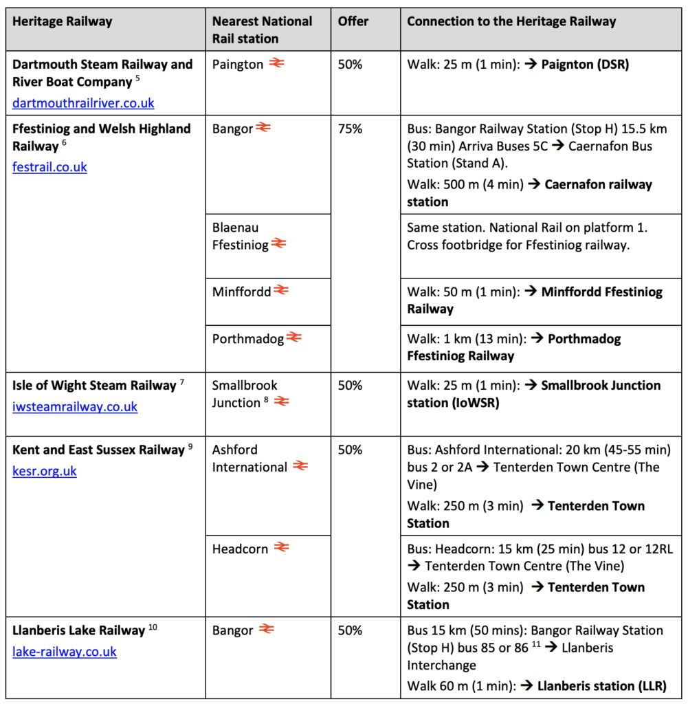 Sommige historische spoorwegen bieden korting aan houders van de FIP International Reduced Rate Card. De aangeboden korting is 50 op het volledige openbare volwassenentarief. Dit is een niet-contractuele regeling maar een gunst van de maatschappij en kan op elk moment worden ingetrokken.